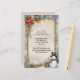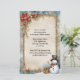 An old-fashioned snowman in a scarf and top hat stands in a snowbank next to a wrapped Christmas present on this charming Christmas party invitation. Beautiful rustic scene, and perfect for your holiday get-togethers! Remove the text, and it would make perfect holiday newsletter stationery.