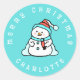 Snowman With Custom Name | Christmas Turquoise Classic Round Sticker