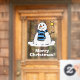 Window Christmas Greeting. Christmas Snowman on a Window Cling Graphic. Message says "Merry Christmas!" (but you can change it). Christmas decoration. Graphic sticks to the glass window.