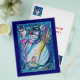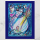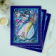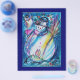 Whimsical ,colourful and cool Winter night illustration ,watercolor painting in vibrant blue white,pink,colours .