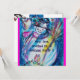 Whimsical ,colourful and cool watercolor and acrylic painting in vibrant blue white,pink,colours with black and red flourishes.