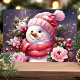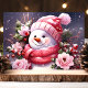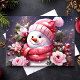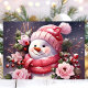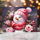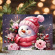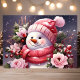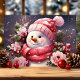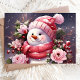 Spread festive cheer with this charming holiday card featuring a snowman dressed in a pink scarf, surrounded by pink roses and winter berries. Perfect for sending joyful Christmas wishes, this card adds a whimsical touch to your holiday greetings.