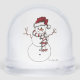 Globe features a hand drawn original design of a snowman wearing a festive Santa hat.