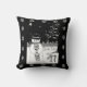 The christmas star is twinkling in the night sky and the snow has fallen covering the nearby tree with little piles of snow. This cute smiling snowman on this black and white contempary christmas cushion is looking at his stripy Christmas stocking, which is hanging on a nearby twig, hoping for Santa to drop by and fill it up with lots of special Christmas gifts. The happy snowman is wearing a black hat and a striped scarf. I think this black and white christmas illustration of a snowman on this original cushion will bring seasonal cheer during the festive holiday period. This is a customisable christmas cushion, you can personalise it with your own message on the front. The original black and white snowman illustration was drawn in pen and ink. Happy Christmas!