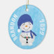 On the front of the ornament, a cheerful snowman enjoys a cup of hot cocoa, radiating the warmth and cosiness of the holidays. The back of the ornament continues the whimsical theme, showcasing a snowman juggling snowballs, one entangled in glowing lights, another standing snuggled in his winter gear, and two snowmen sharing a heartwarming story. The ornament also includes a special spot for you to personalise with your name and the year.