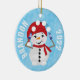 The color palette, showcasing bright red, cobalt blue, dark teal green, white, and frosty blue, infuses a festive charm into your holiday decor. With its adorable, sweet, fun, and festive design, this "Snowman's Winter Wonderland" Christmas Tree Ornament is the ideal way to add warmth and joy to your Christmas tree.