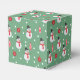 Snowmen in scarves and top hats, interspersed with red Christmas ornaments and white, round snowflakes creates a cute and charming gift box with a vintage look.
