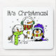 A cute holiday design featuring two snowmen and a penguin dressed in scarves, winter hats, and earmuffs and text that reads It's Christmas on holiday T-shirts, sweatshirts, mugs, bags, cards, stickers, keepsakes, pillows, and much more!