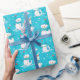 Snowmen and Snowflakes Blue White Modern Christmas Wrapping Paper