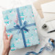 Delicate snowflakes scattered throughout the wrapping paper enhance the festive and frosty theme. The crisp white snowflakes stand out beautifully against the light blue backdrop, adding a magical touch that evokes the wonder of a snowy holiday morning.