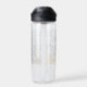 The bottle looks even better in real life. The ice cubes I put in lasts all day! I have my bottle with me all the time. It's summer and having something cold to drink feels amazing. With this bottle I always have something super cold. I have only tried the hot drink once and it lasted a long time as well. The color blue is a navy blue and the white printed on it is vibrant. It printed perfectly. I love my personalized smile water bottle.