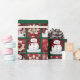 Cute snowmen in hats and scarves, interspersed with white flowers and branches on a green background, creates a fun collage that's perfect for your holiday gifts.