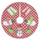 Snowmen, Gifts, Ornaments holiday tree skirt features a red with white stars background with three adorable snowmen in top hats and red, white, and green winter scarves, two pretty wrapped Christmas gifts, and two green holiday tree ball ornaments! This fun and colourful Christmas mice design holiday tree skirt makes a great gift or get one for yourself to enjoy for years to come!