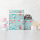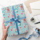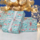 Snowmen Reindeer on Aqua Blue Kids Christmas Wrapping Paper