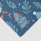 Add a touch of holiday cheer to your gift wrapping with this delightful Christmas-themed tissue paper. The design features an enchanting blue background, creating a perfect wintry canvas for a charming pattern of adorable snowmen, delicate falling snow, festive greenery, and Christmas trees. It's a whimsical way to bring the magic of the season to your presents.