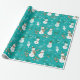 Snowmen Snowflakes Holly Leaves Green Christmas Wrapping Paper