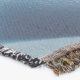 A quality printed throw has its advantages. This is a much finer weave throw than its loopier cousins, and though lighter, it is worth the investment for custom room accessorizing. The back is much prettier than the typical brown, and the fringe on the long sides very vivid, the selvage nicely done. Before photographing, I washed the throw in cold water, delicate, with a thicker woven throw the same size. On tumble dry low, this throw was dry in half the time as the other. This is a very practical quality if you use throws for furniture covers or to wrap up in frequently. The sleekness of the fabric makes it a great layer for accenting or protecting without the feeling of sitting on too much stuff. Perfect for napping or when you feel a light chill coming on. The color printing is beautiful and on this fabric, matched the design and color of my Photoshop image. This is an advantage for blending room fabrics and colors. The fringe on the short sides prints the colors from the design image and therefore varies from the side fringe. I streaked a white fractal line through the plaid pattern to give the illusion of weaving. This printed as crisp as an illusory thread, and put some white in the short side fringe, showing another advantage of print vs loomed- for artistic purposes, line lines, detail, and color integrity can be planned and preserved. My loomed throws have color limitations and more of a needlepoint texture. Print throws reproduce an exact image. The throw felt a little stiff straight out of the package, but this went away in the first delicate wash. Of course I searched the wash water for ink or bleeding and there was none.