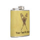 Well made flask, a little better than I had expected. Flask came in clear plastic box which gave it a nice presentation when I took it out of the zazzle packaging. Image is not printed on flask but on sticker. Don't know how this will hold up I haven't used it yet. This would make a Great gift! I plan to purchase more for friends! Cheers. I thought a little brighter than computer. Very crisp, writing wasn't