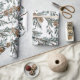 A neutral winter holiday wrapping paper featuring watercolor-painted juniper tree branches with pine tree cones and a light dusting of snowflakes. A classic Christmas winter holiday neutral gift wrap wrapping paper.