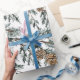 Snowy Blue Juniper Tree Branch & Pine Tree Cones Wrapping Paper