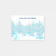 A stylised, blue monotone image of conifer trees covered in snow. Add your own text.