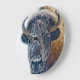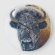 American Plains Bison clock. Hoarfrosted buffalo in a Yellowstone Park winter scene.