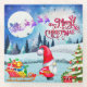 In the enchanting "Snowy Christmas Gnome And Santa's Sleigh" design, a whimsical winter tableau unfolds beneath a deep blue sky adorned with sparkling stars. A radiant full moon casts a soft glow over the snowy landscape, where a festive gnome, donned in a cosy red hat, stands amidst trees dusted with snow. Santa's sleigh, pulled by majestic reindeer and laden with beautifully wrapped gifts, takes centre stage, capturing the magic of holiday joy. This heartwarming scene, set against the backdrop of a tranquil snowy night, evokes the spirit of Christmas with its charming details and celestial ambiance.