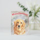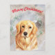 Snowy Christmas illustration with golden retriever Postcard