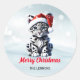 Snowy Christmas Santa Cute Snow Leopard Cub Classic Round Sticker