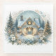 A serene snowy cottage glows beneath a star-lit winter sky, framed by twinkling trees, soft lantern light, and delicate botanical flourishes in muted blues, creams, and gentle golds. The scene blends cozy cottagecore charm with whimsical holiday warmth, wrapping the viewer in a nostalgic, storybook mood. Frosted evergreens, soft snowfall, and graceful florals create an enchanting, peaceful atmosphere perfect for lovers of dreamy folk aesthetics and soft watercolor winter themes. AI generated artwork.