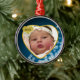 Snowy Dark Blue Baby's Birth Year Photo Christmas Metal Tree Decoration