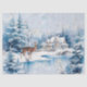 Snowy Deer in Forest near Lake House in Winter Tissue Paper