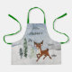 Merry Christmas & Happy new year apron featuring a joyful baby deer running in a beautiful watercolor snowy forest background.