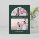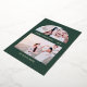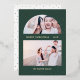 This beautiful Christmas card features a modern arch picture grid and two of your favourite family photos, with a real foil gold snowy dot print on the front with an elegant green background. The back features a coordinating dark hunter green and white dot print. This festive design is a perfect way to send holiday greetings to family and friends!
