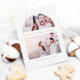 This beautiful faux gold and white Christmas card features an arch picture grid, and two of your favourite family photos.