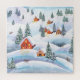 Snowy hills, houses: watercolor landscape jigsaw puzzle