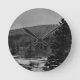 Snowy Landscape in Black and White Round Clock