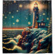 “Snowy Lighthouse on Cliff” Shower Curtain