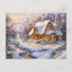 cosy farmhouse nestled in snowy mountains with a gentle stream, captured in a serene oil painting style.