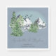 Snowy Mountain Landscape Pine Forest on Dusty Blue Napkin