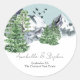 Snowy Mountain Landscape with Pine Forest Trees Classic Round Sticker