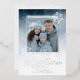 Send warm wishes this holiday season with our elegant snowfall ombre photo Christmas card. This stunning design features a beautiful gradient background, transitioning from deep winter blues to a soft, frosty white, accented with delicate falling snow. Your cherished family photo takes centre stage within a crisp silver foil frame, flanked by sophisticated silver-foiled snowflakes. The classic "Merry Christmas" script adds a touch of timeless charm. Easily personalise with your family's name and photo for a truly unique and memorable holiday message. Perfect for families, couples, or anyone celebrating the winter holidays. Created by Simply Farmhouse Press.