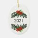Commemorate the holiday season with The Snowy Owl Ceramic Ornament. Our Snowy Owls Top Hat is overflowing with Holiday magic, lavishly adorned with white budding roses, pine sprigs, poinsettias & Mountain Holly. The back of this special ornament features more wintery sprigs of pines and poinsettias as well as customisable text. Change the date and add your name if you choose.