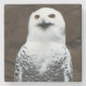 Snowy Owl - Portrait of a snowy owl standing on a log.