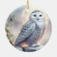 Snowy Owl in Moonlit Winter Garden Ceramic Tree Decoration