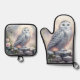 Snowy Owl in Moonlit Winter Garden Oven Mitt & Pot Holder Set