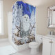 Gorgeous snowy owl in snow, dark blue sky, shower curtain is perfect for owl enthusiasts world wide. Matching bathmats available