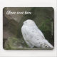 Snowy owl sitting among stones. Add your own text by replacing "Your text here".