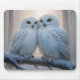 Two magnificent snowy owls gracefully perched on a winter branch, bathed in the warm glow of sunlight
