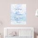 Snowy pastel blue bokeh winter baby shower welcome sign.